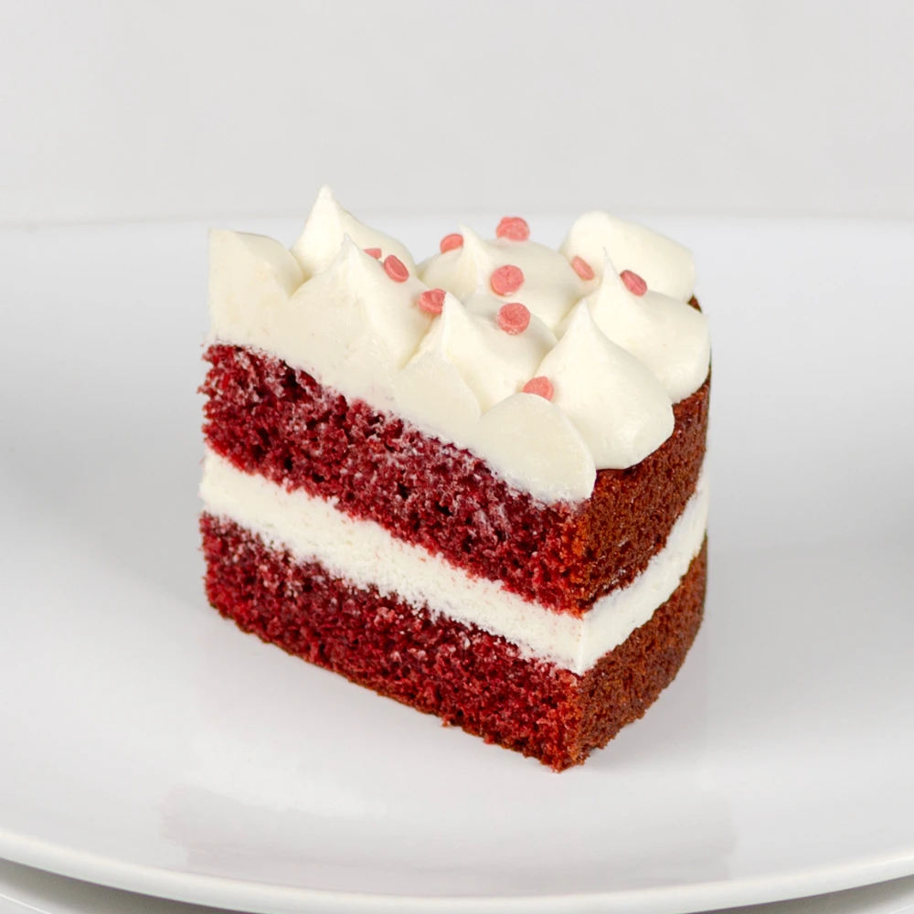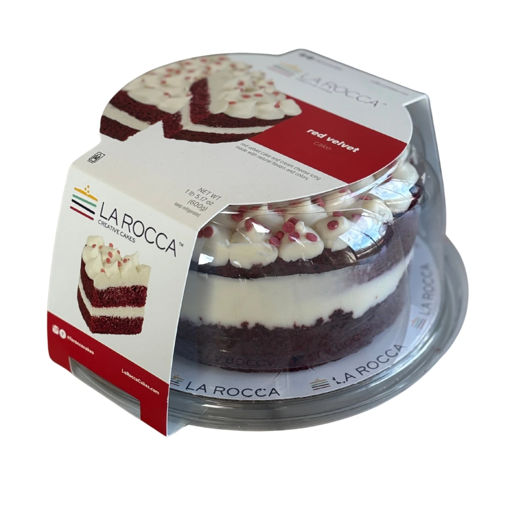 Moist velvet cake, with a touch of cocoa, is layered with La Rocca’s own cream cheese icing made with Canadian cream cheese