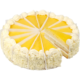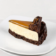 A layer of dark chocolate truffle and a layer of white chocolate truffle sit atop a layer of rich devil’s food cake. Decorated with a dark chocolate coating and waves of white chocolate swirls.